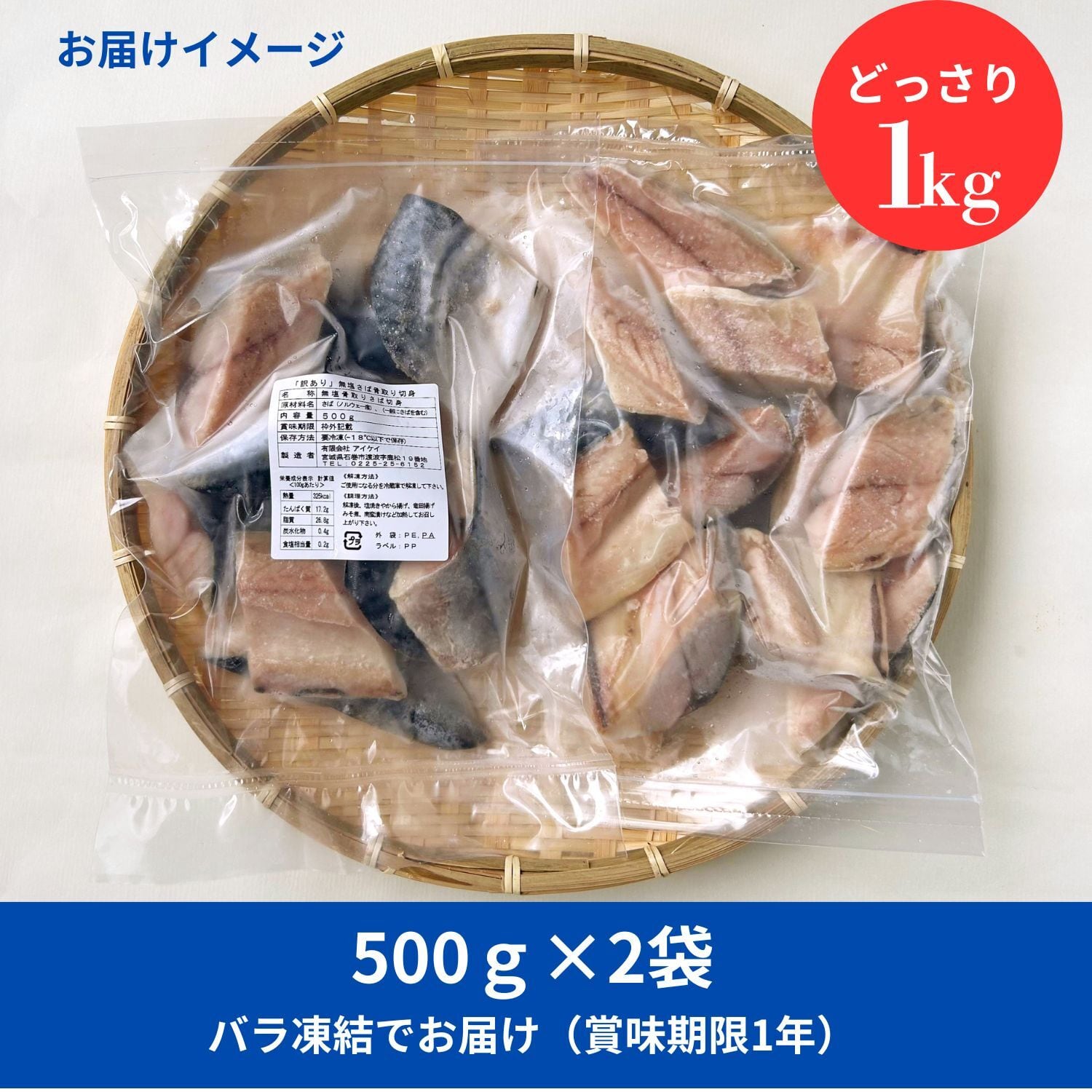 <訳あり> 無塩トロさば腹骨取り 切身 1kg ( 500g × 2袋 )