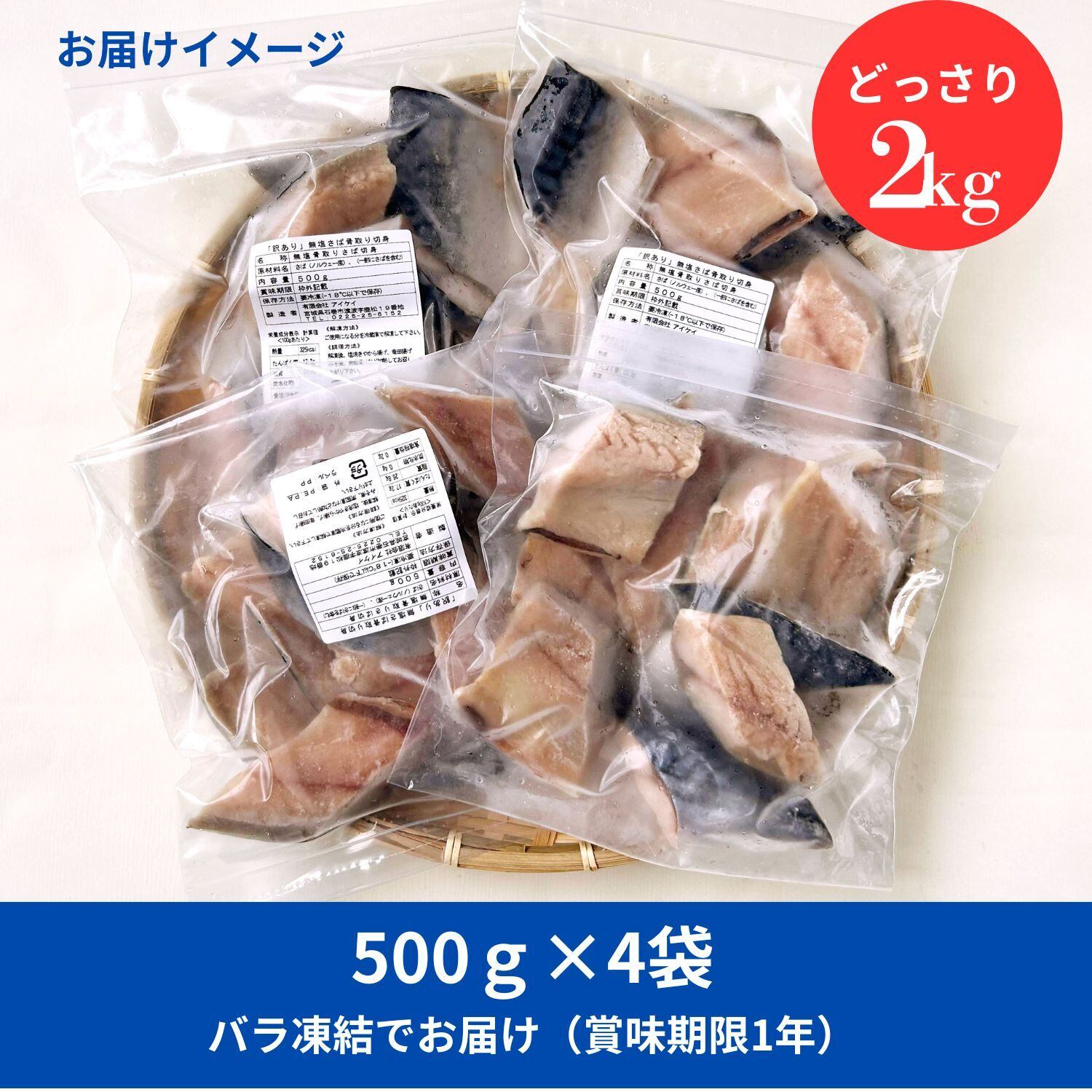 <訳あり> 無塩トロさば 腹骨取り 切身 2kg ( 500g ×4袋 )