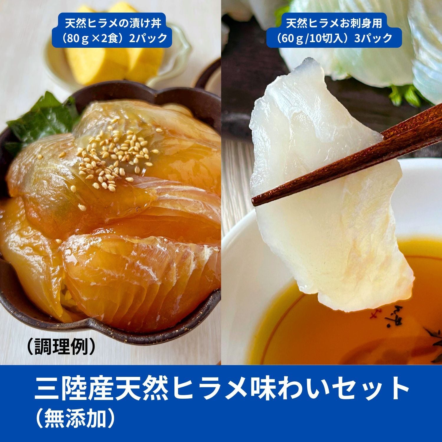 三陸産天然ヒラメ味わいセット《天然ヒラメの漬け丼(80g×2食)2パック・天然ヒラメお刺身用(60g/10切入)3パック》|冷凍120日
