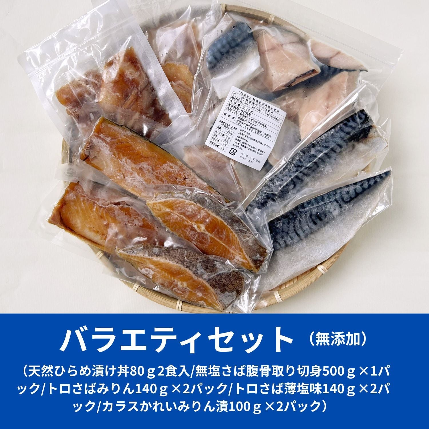 バラエティセット(天然ひらめ漬け丼80g2食入/無塩さば腹骨取り切身500g×1パック/トロさばみりん140g×2パック/トロさば薄塩味140g×2パック/カラスかれいみりん漬100g×2パック)