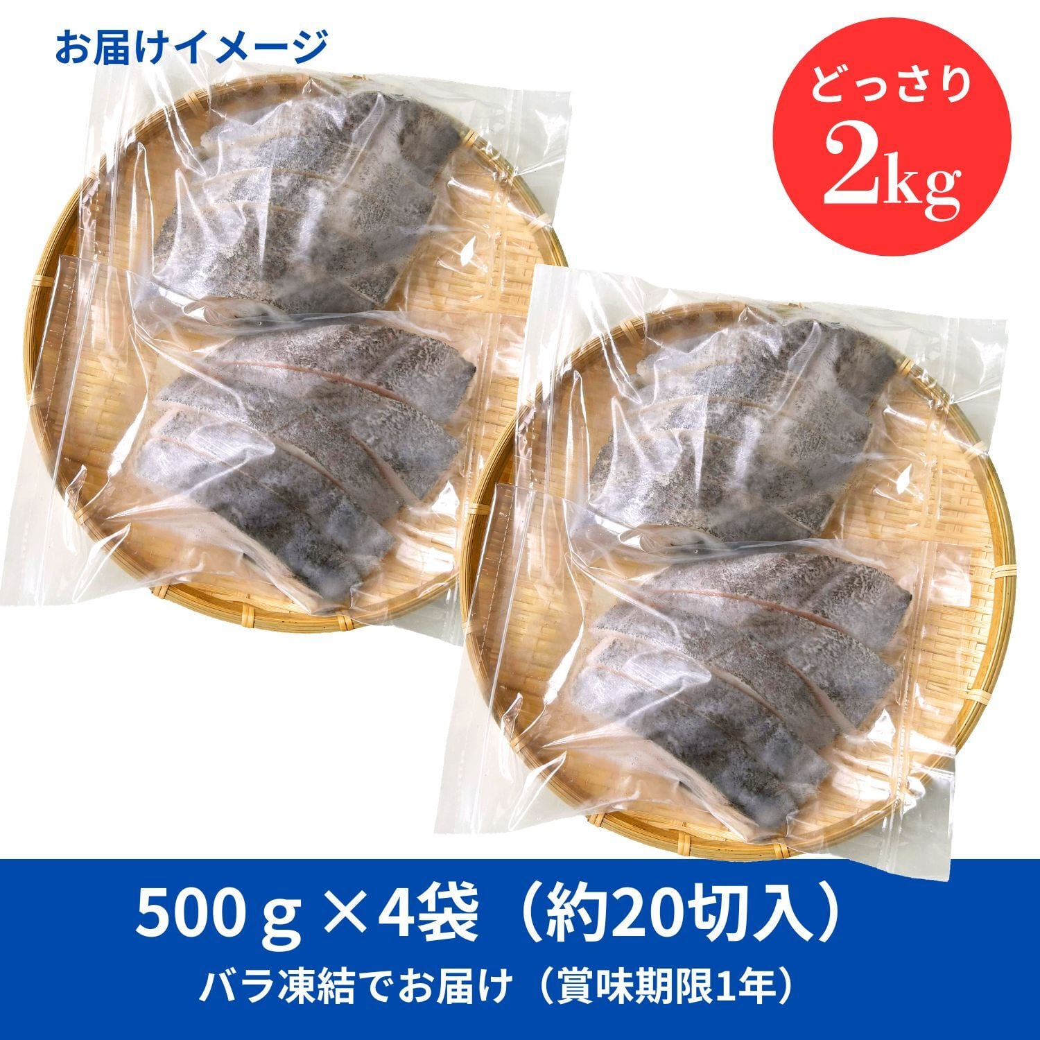 肉厚な切り身にカットし、使いたい時に使いたい分だけサッと取り出せる「バラ凍結」でたっぷり2kg(約20切)。